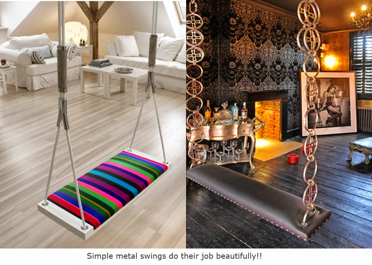 We might not have courtyards or large patios in our modern homes but we still have the choice to pamper ourselves with swings that do not demand large spaces. Here are some simple and some elaborate ways in which people have used swings to enhance their interior spaces.