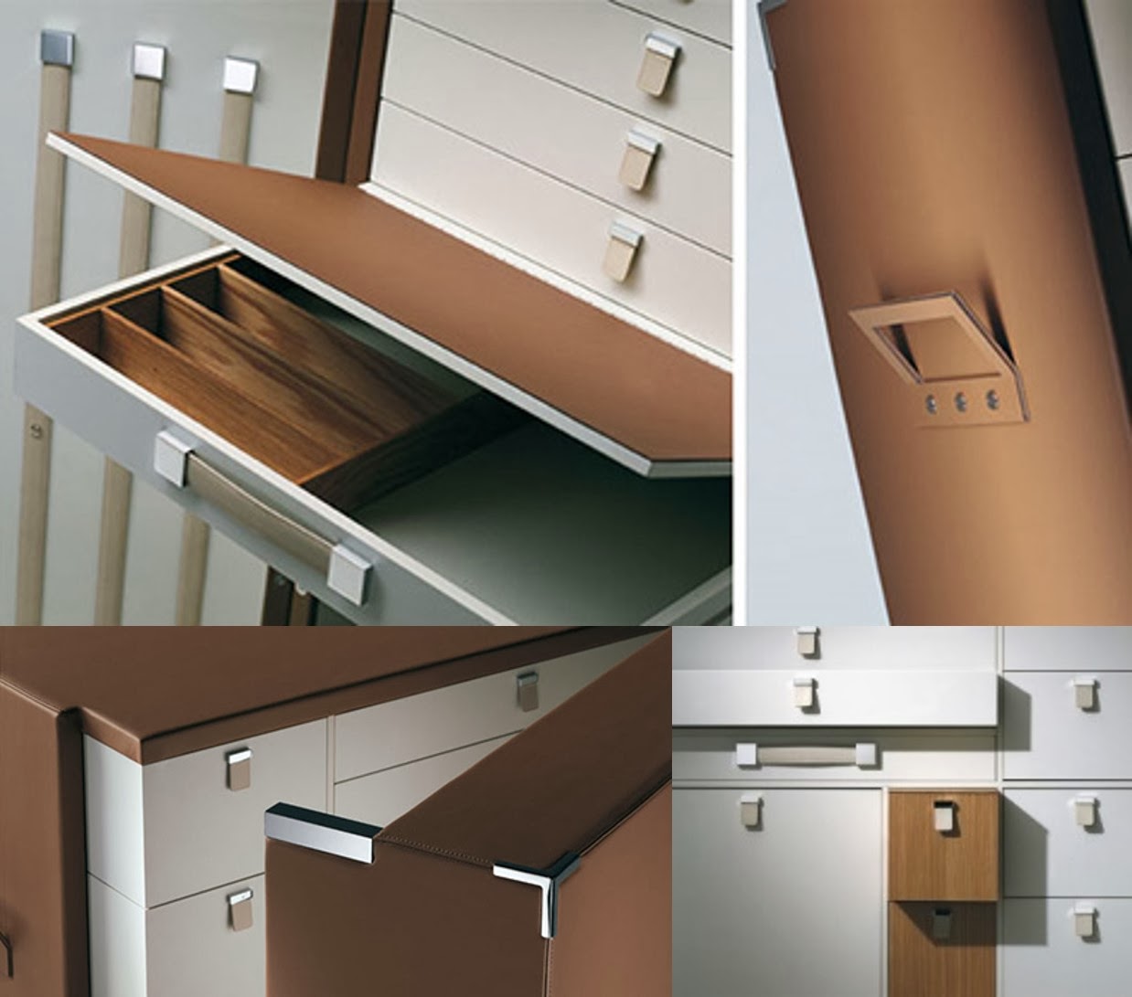 Color System. Available in fifteen different finishes, its interior is embellished by three drawers in