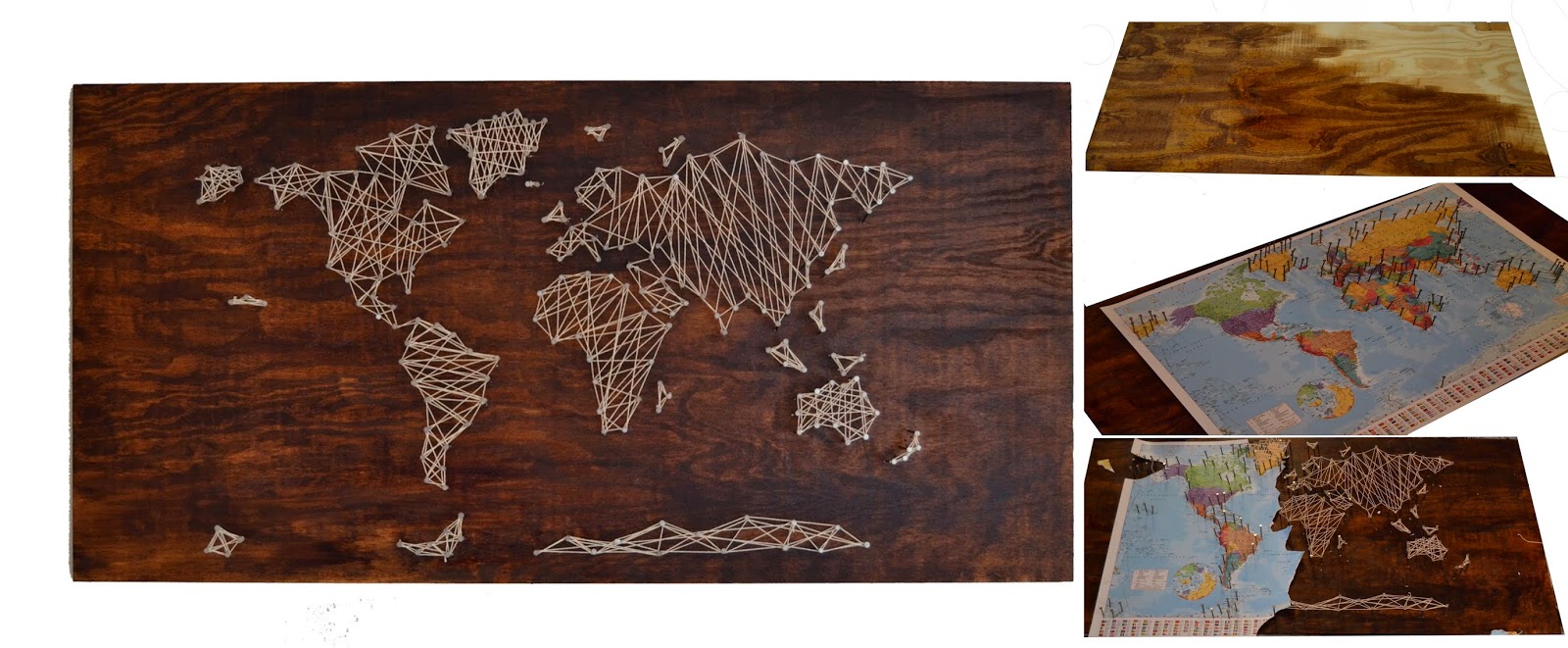boards from Walmart, stencil the world map, paint it, and Voila! You have it