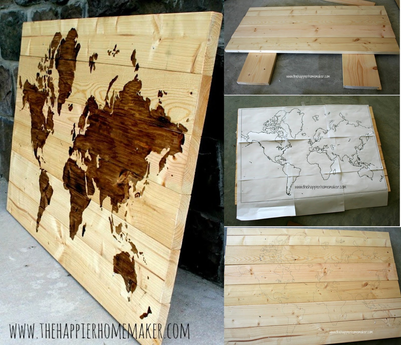 HAPPIER HOMEMAKER’s Wooden World Map Art is gorgeous and has a very country-cool